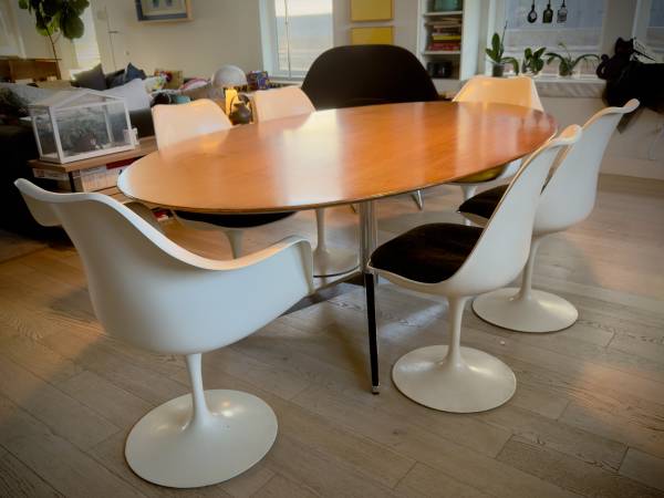 If you are READING THIS...the table is still available. And NO...the Vintage Tulip chairs are not included or for sale :0)