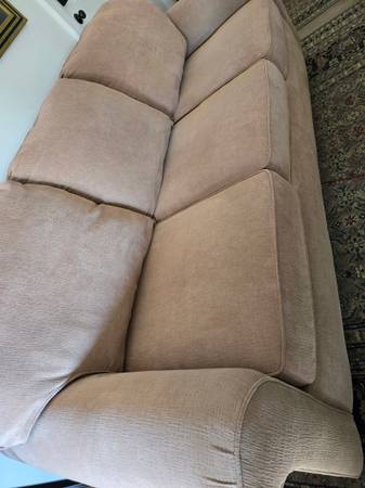 Comfortable light brown sofa. Clean. Cushion covers recently washed. 38'' H X 86'' W X 37'' D Selling because we are upgrading to sectional that better fits our space. See all pictures Cash, venmo...