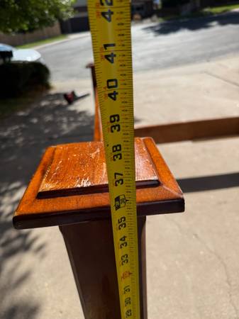 Solid maple hardwood bed frame. Has some normal wear and tear from 20 years of use. The cross beam support system needs about 5 minutes of basic work to fix. Can fit a 60x82" mattress.
