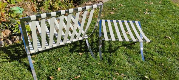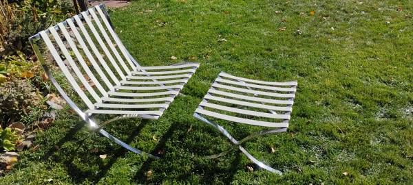 Barcelona Chair and ottoman Frame only Ready for cushions 29.5 inches wide by 30 inches deep 30.25 inches tall Seat height 17 inches