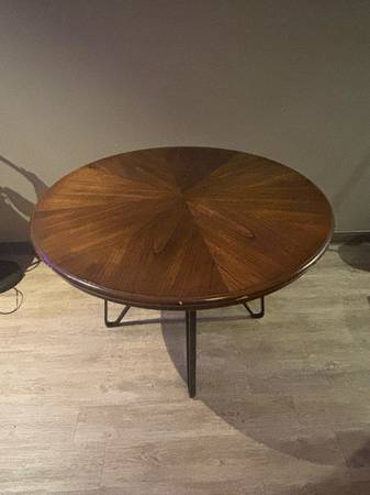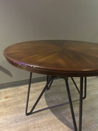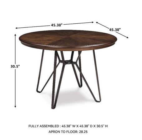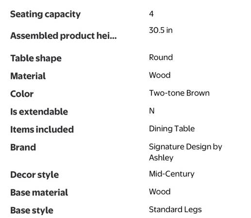 Mid-century modern-style round dining table from Signature Design by Ashley Centiar. It's a great piece for a breakfast nook or smaller dining area, seating up to 4 people. Originally purchased at $224.