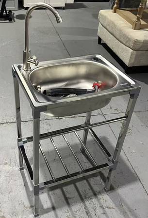 🥨 Outdoor Garden Sink Single Trough, Small Stainless Steel Utility Commercial Kitchen Washing Hand Basin Station Sink with Storage Shelve and Faucet, for Restaurant, Bar, Laundry, Garage, Backyard