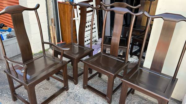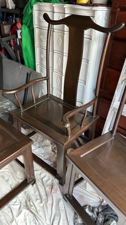 Rare vintage Chinese Ming style Chair oriental CHINESE EMPEROR CHAIR Dark Espresso Elmwood L24”*D18”*H19”$185 each❗️8 available(address in description)