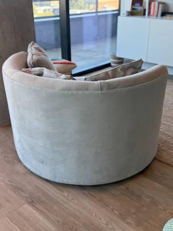 The chair is in excellent condition and comes from a smoke-free, pet-free home. The swivel mechanism works perfectly. It currently retails for $1,699 plus tax.