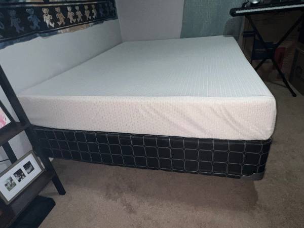 Selling Queen Sized 10” Memory Foam Bed With Framing and Box Set. Condition is excellent. We kept it in our guest bedroom and barely was used ever. Originally purchased for over $600. Selling for $225. Mattress comes with box set and metal frame. Ready to sleep on today! Check out the pictures. Message me for more info. Thanks.