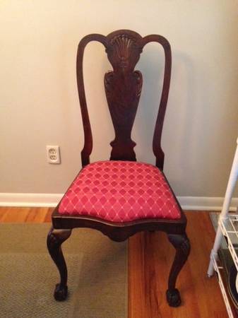 Beautiful massive Singer maple dining room table. Been in the family 50+ years and we were hoping to put it in a mountain cabin that never happened. It's 44" wide x 76" long with (2) 12" leafs making it full 100". Queen Anne dining room chairs (4) side & (2) end chairs, new cushion covers and extra bolt of fabric. Asking $400 for table and $150 for chairs, (or best offer), cash only.