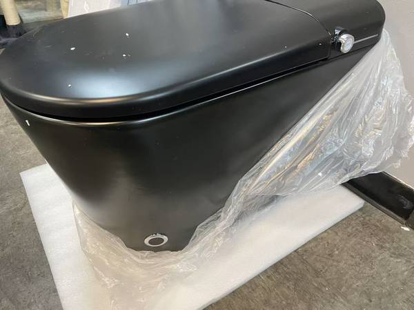 😀 Smart Toilet with Tank Built in, Built-in Booster Pump, Power Flush, Auto Open & Close, Foot Sensor Operation, Modern Elongated Toilets with Warm Water, Aroma System, Black