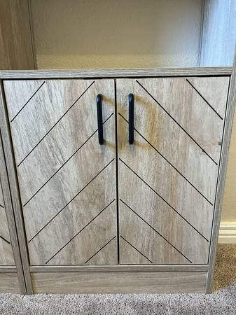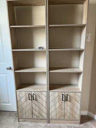 Note: We did have to repair surface of one of the selves, and also cut grooves to go over baseboards (both pictured)