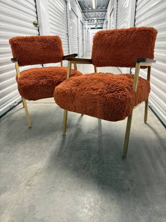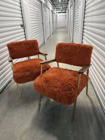 Two furry orange chairs. $100 Unique, mid century, reupholsted. Both chairs are in climate controlled storage at Public Storage at 3110 S Wadsworth, Lakewood. Merging households due to recent...