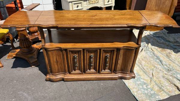 Vintage Flip Top Server Sideboard Buffet Credenza console table On Wheels L48”~L74”*W18”*H33”Hibriten Furniture Co