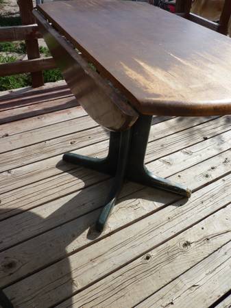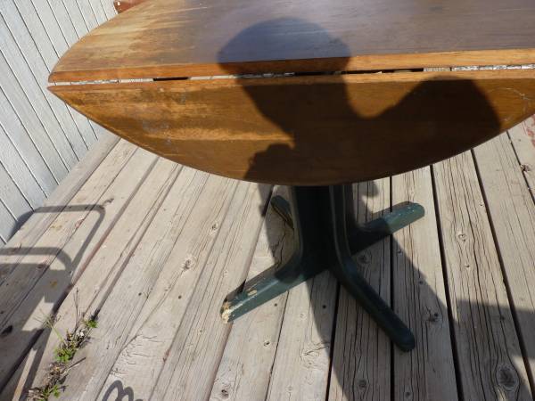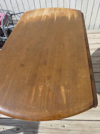 The table needs love. You can see where a chair kept hitting 2 feet of the table.