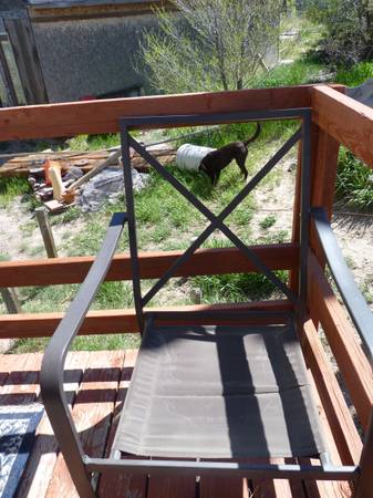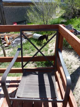 The chairs can be used without the cushions. The seat is fabric and the back and rest of the chair is metal
