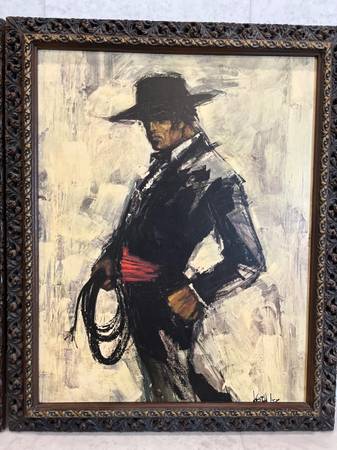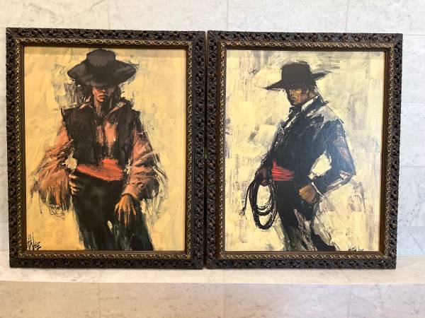 1950’s or 1960’s large prints by Keith Lee. Named Gaucho and Seniorita, they are both 35” wide by 43” tall in beautiful ornate carved frames. Rare to have both these prints together in such excellent condition. $150 each, $200 for both