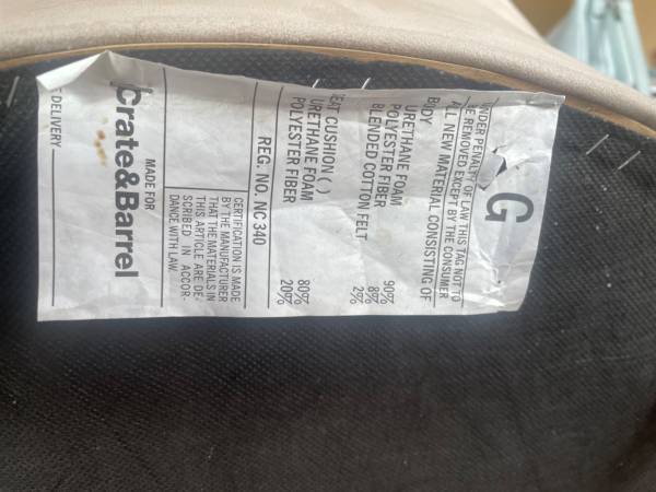 I am selling eight (8) dining chairs from Crate and Barrel. Not used all that much and very comfortable. Neutral beige color with dark walnut color wood legs. Smoke-free home.