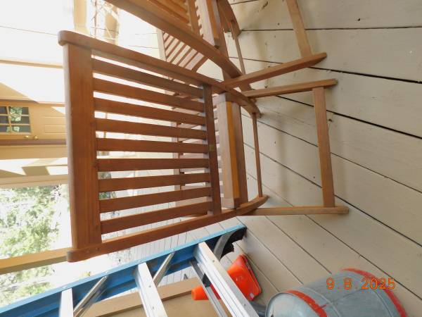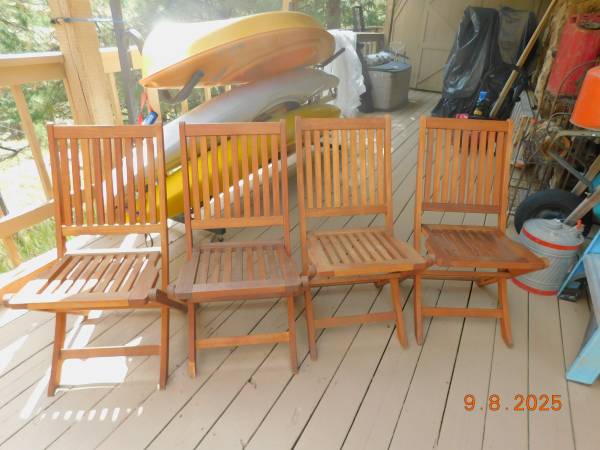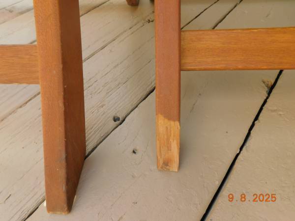 One chair has damage to the leg, which does not affect use. The others are all in good condition.