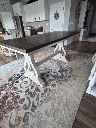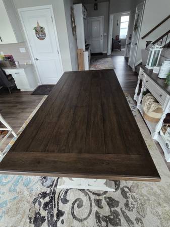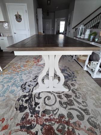 Modern two tone table that is 36w 76L x 36 tall. Built a new island. No use for this nice table anymore.