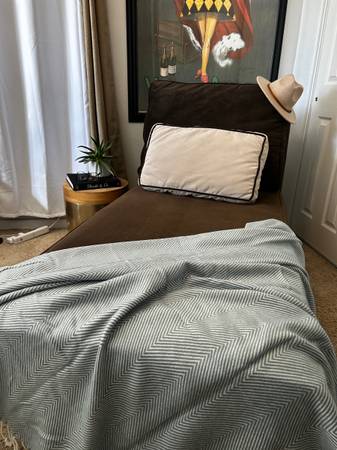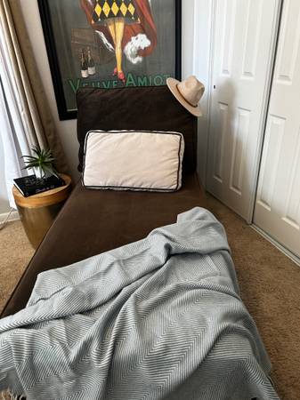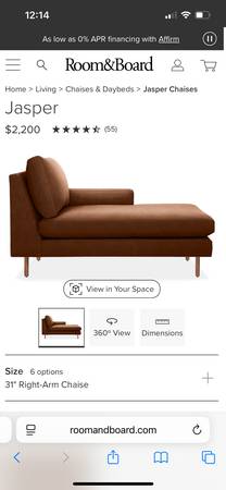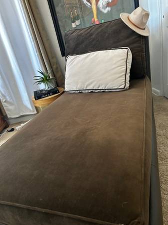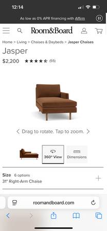 Very comfortable and lightly used room board chase lounge. And very good condition with little wear. Closest to the Jasper lounge that’s available now. Dimensions are approximately 64 inches long by 30 inches wide and 19 inches high but the back is 35 inches high. Cash and carry only.
