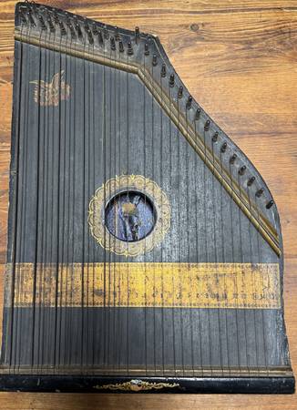 Antique Menzenhauer Zither Guitar Stringed American Eagle Emblem Flags $60 firm 14" wide x 20" tall These sell for several hundred online. THIS ONE HAS A CRACK on the back wood plate (see pics)...