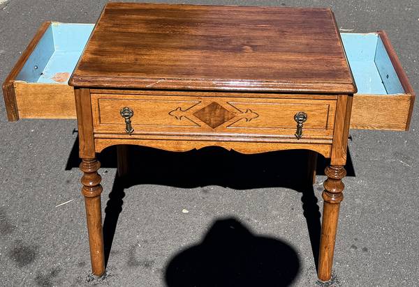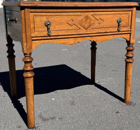 Antique Vintage Solid Wood Unique End Table Side Table Night Stand $60 firm 23" wide x 16" deep x 21" tall Click "more ads by this user" to see more tables $50 curbside delivery for reasonable...