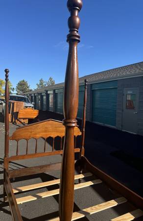 Beautiful Vintage Solid Wood 4 Poster Full Size Bed Frame. These posts don't unscrew, you'll need a bigger vehicle to fit this. A pickup or a full size van. $240 firm Click "more ads by this user"...