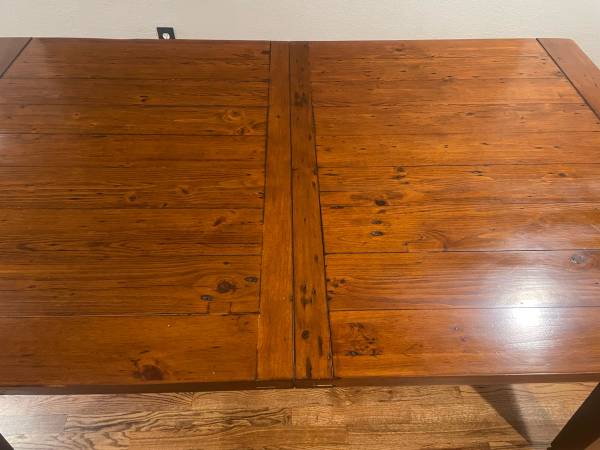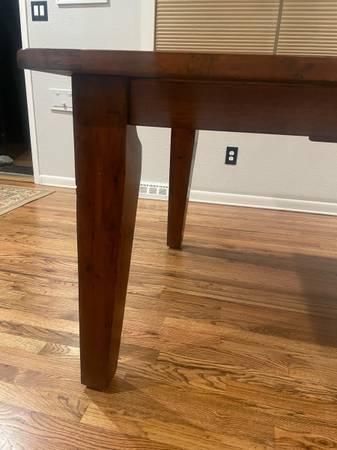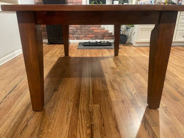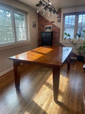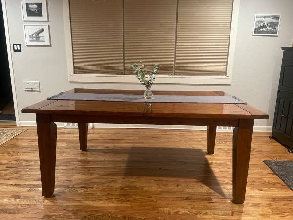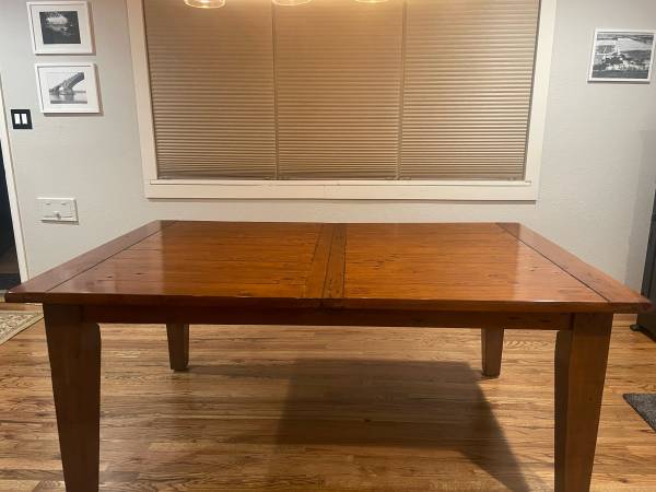 The Irish Coast Collection Table measures 72” without the leaf and 96” with the leaf. Width is 44” and height is 31”. Seats up to 12 people fully expanded. The leaf is stored within the table when not in use. This is a high quality, sturdy, heavy, table. Still available in stores, it retails for over 2k. Must pickup but we can help you load it. Venmo or cash.