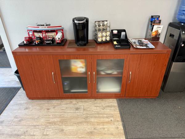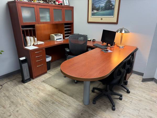 Up for sale is a set of modular office furniture, including L shaped desk with hutch, free standing cabinet, 3 office chairs, water dispenser. Please let me know if you have any questions. Furniture...