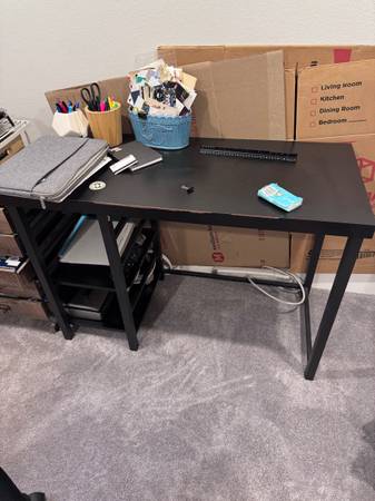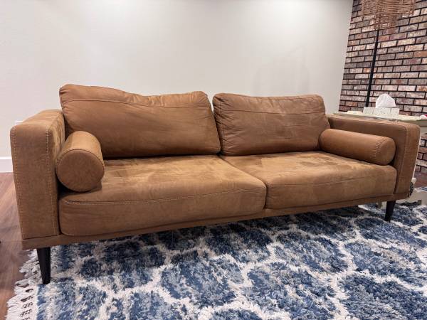 Ashley furniture sofa, suede look fabric $150 great condition Desk- scratched - $20 Desk chair- great condition - $20 Must be able to carry on stairs yourself for loading.