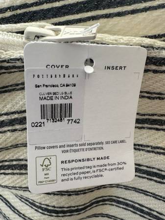 Selling a brand new with tags Pottery Barn Culver Stripe Blue Pet Bed Cover. Size is large. Cover only, bed insert is not included. Two pet bed covers.