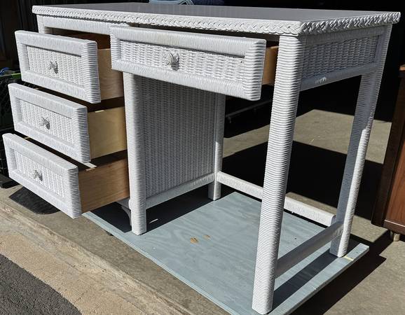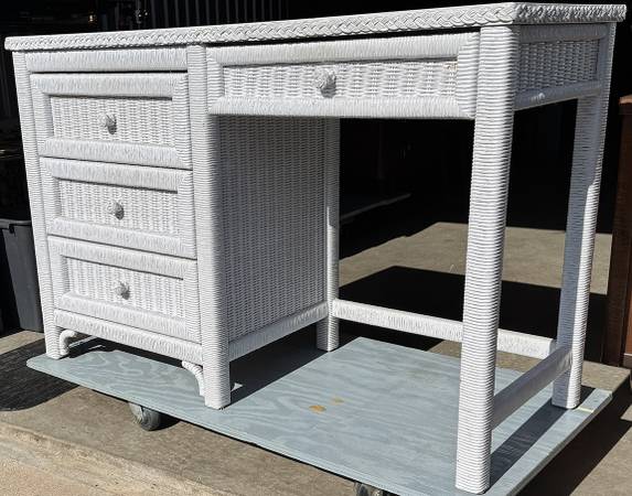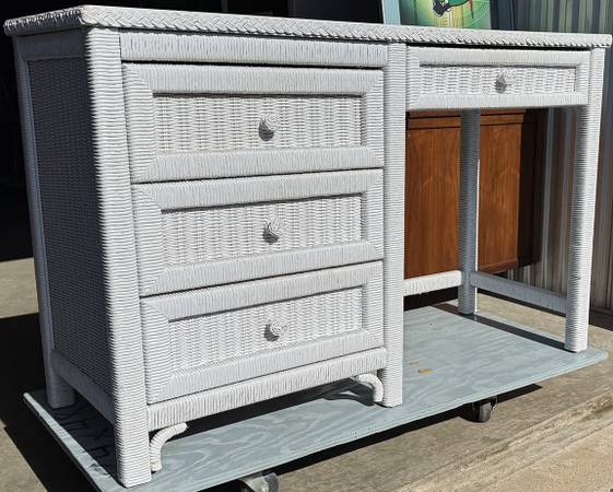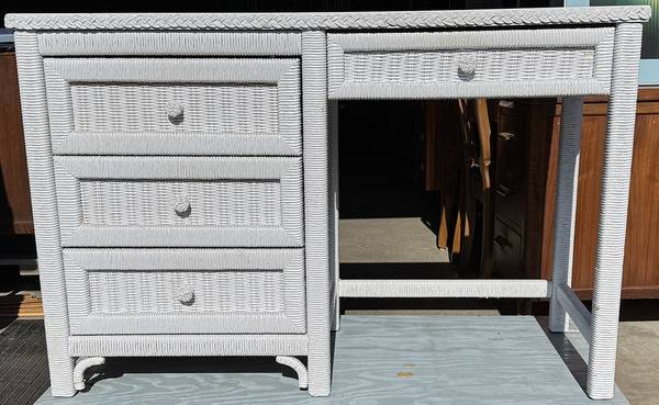 Vintage Cape Cod Cottage White Wicker 4 Drawer Desk by Lexington $200 firm 46.5" wide x 19.5" deep x 30" tall Click "more ads by this user" to see more desks $50 curbside delivery for reasonable...