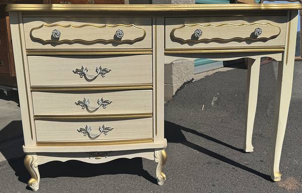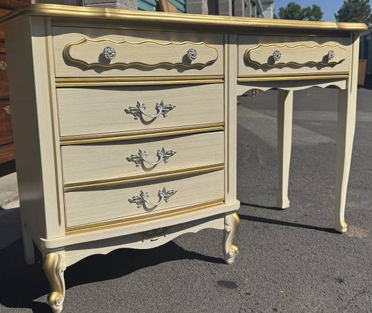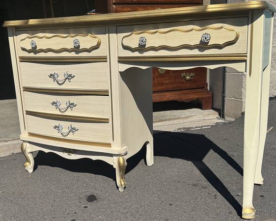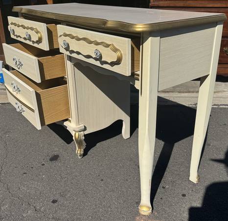 Vintage 4 Drawer French Provincial Desk by Bonnet by Sears $160 firm 43.5" wide x 17" deep x 30" tall Click "more ads by this user" to see more desks $50 curbside delivery for reasonable distances