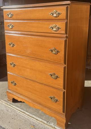 Vintage 4 Drawer High Boy Dresser by Bassett Solid Maple with Laminate Top $200 firm 32" wide x 18.5" deep x 44" tall Click "more ads by this user" to see more dressers $50 curbside delivery for...