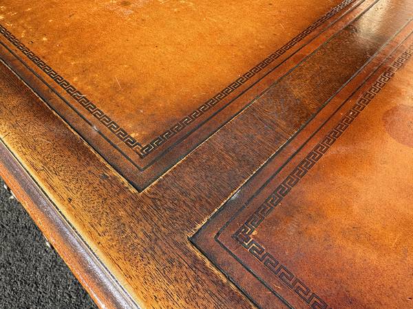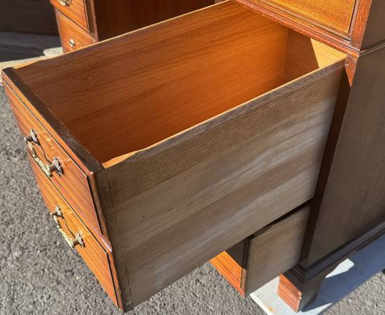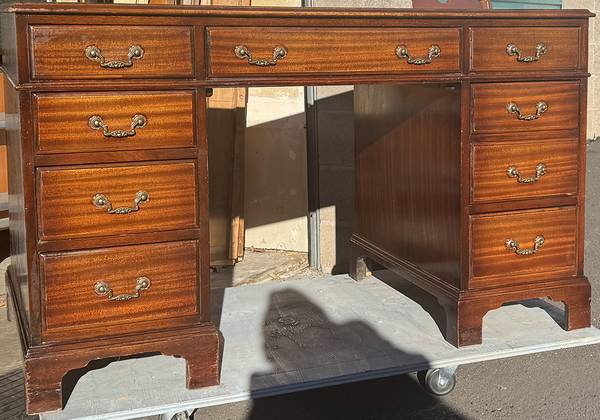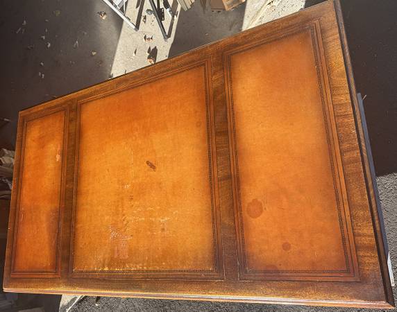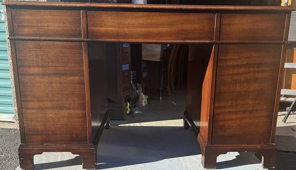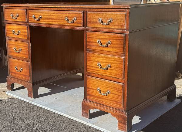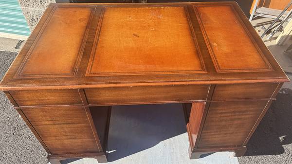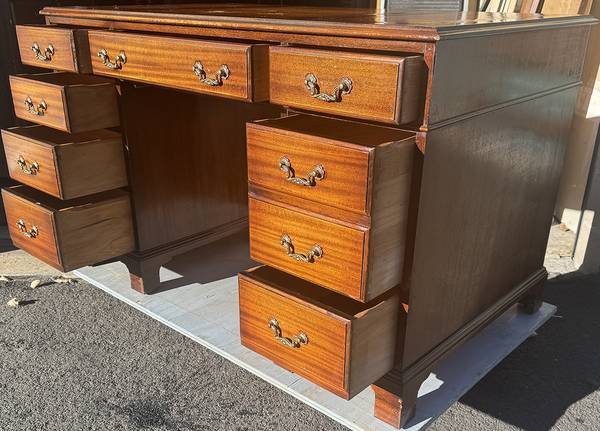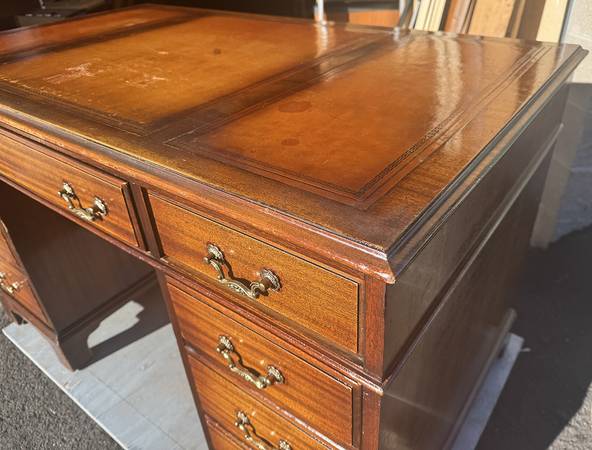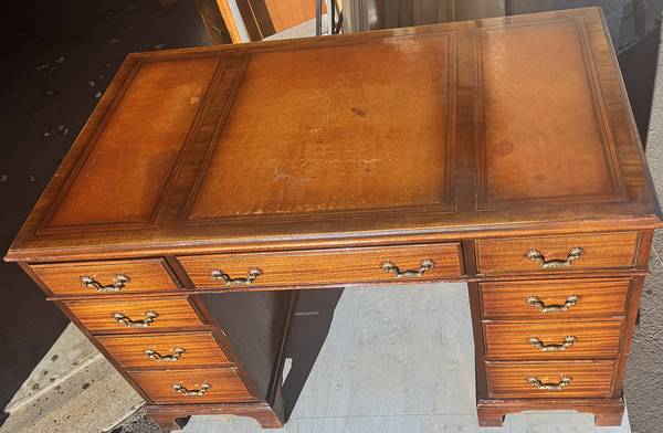 Vintage 8 Drawer Leather Top Executive Desk Bail Pulls Finished Back by Maddox $240 firm 48" wide x 28" deep x 30" tall Click "more ads by this user" to see more desks $60 curbside delivery for...