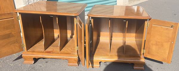 Vintage Ethan Allen Two Piece End Table Record Cabinet Set Side Tables $240 firm 23.5" wide x 23.5" deep x 21.5" tall Click "more ads by this user" to see more tables $50 curbside delivery for...