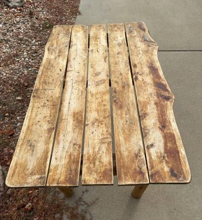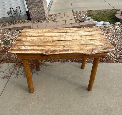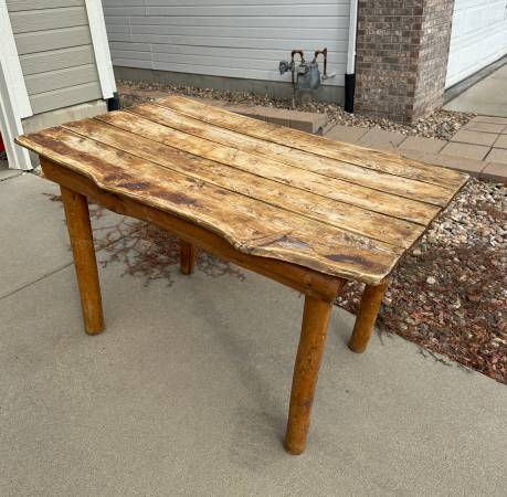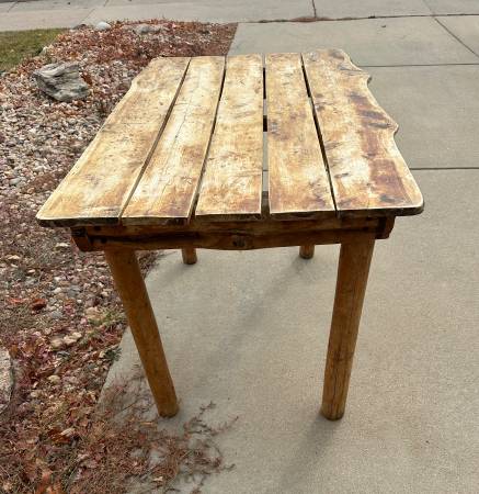 This is a cool vintage log cabin breakfast or small dining table. It has a wonderful patina in the top! So much character! It needs a washer to tighten one of the legs. Otherwise it’s in great...