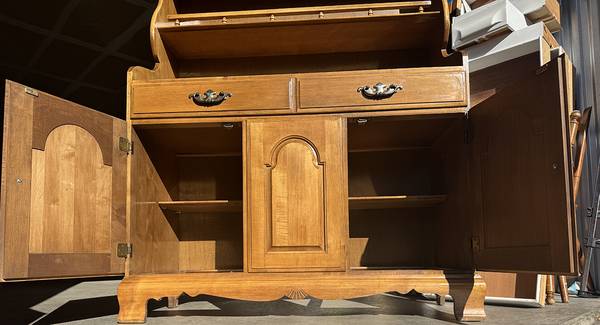Vintage Solid Maple Colonial Style Two Piece Hutch Cabinet $220 firm 42.5" wide x 18" deep x 66" tall Click "more ads by this user" to see more credenzas and hutches $60 curbside delivery for...