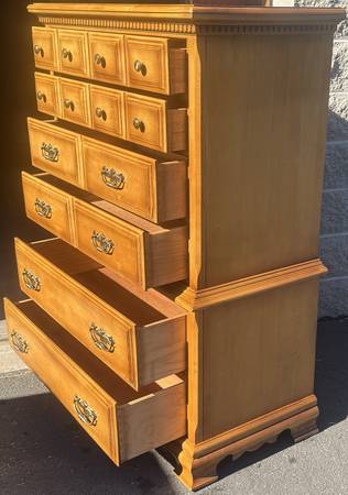 Vintage Solid Maple 6 Drawer Colonial Style High Boy Dresser $240 firm 40" wide x 20" deep x 54" tall Click "more ads by this user" to see more dressers $50 curbside delivery for reasonable distances