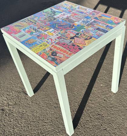 Vintage Unique End Table Classic Board Games Great Gift $60 firm 18" wide x 18" deep x 22" tall Click "more ads by this user" to see more tables $50 curbside delivery for reasonable distances