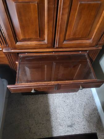 Sleep number king, split beds, with adjustable frames for head and feet. Beautiful, solid wood, headboard with mirrors in very good condition, dresser space and drawers, and lights for reading, slide outs for putting drinks and your phone on, and a cubby hole under mirror for keeping a bottle of wine and a couple of wine glasses. Headboard comes apart in three pieces for moving.