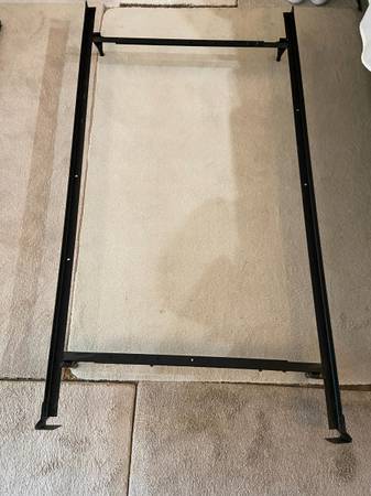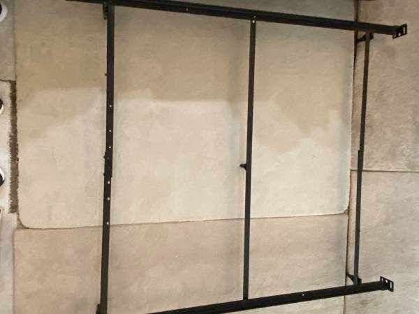 Adjustable steel bed frame for sale. Adjusts from twin size up to queen. (38" - 60"). Asking $25.