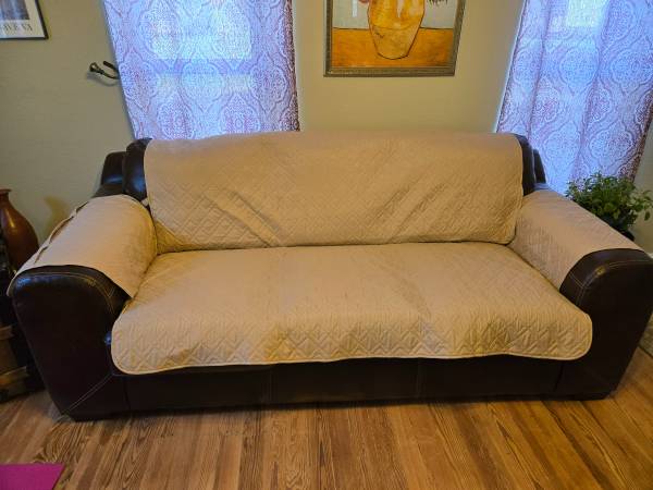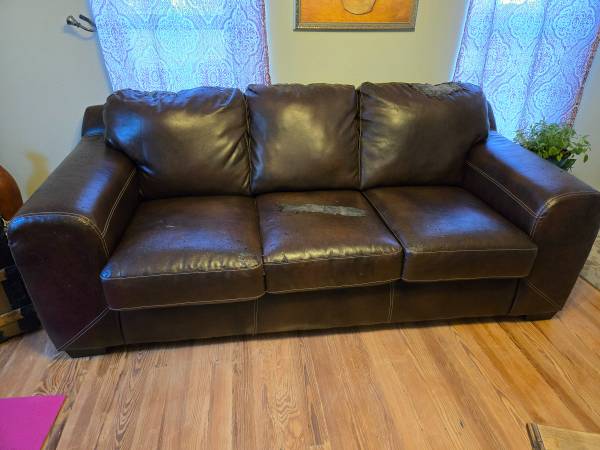 Large 3-person couch we are just hoping someone can use out of. We need something a little smaller. 90" width, 38" height, 38" depth