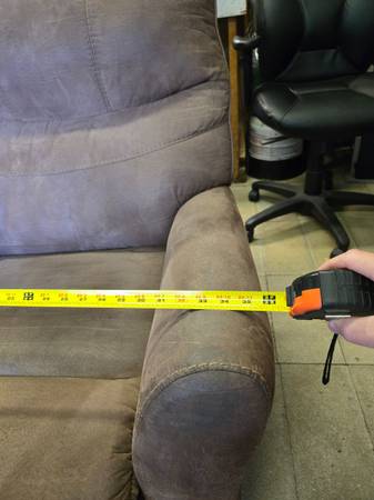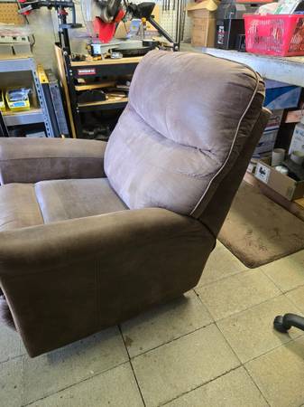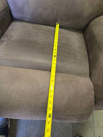 This is a brown microfiber recliner. Please see pictures for more details and measurements. *ALLERGY ALERT* it was in a home with both cat and dog. $20 - Yes, I can help you load it if needed, back...