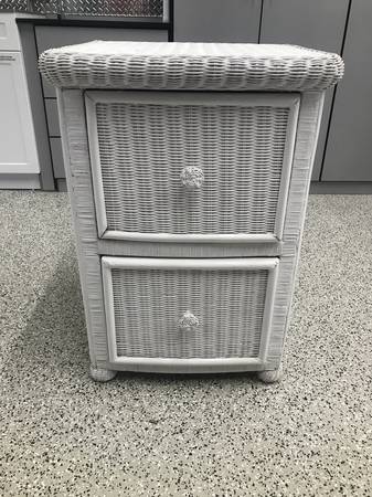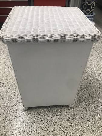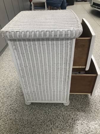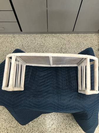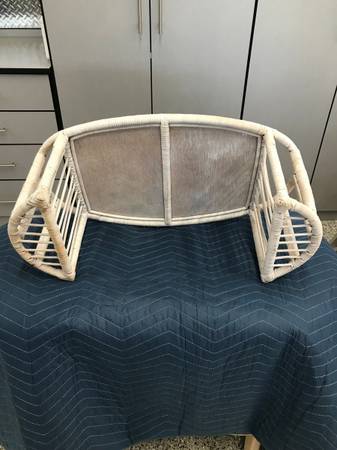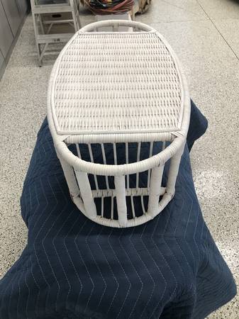 White wicker Chest and Breakfast Tray.
