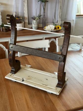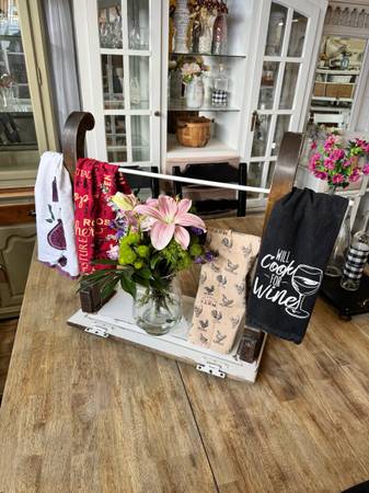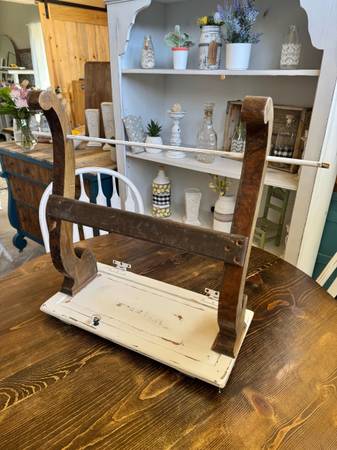 This is a funky shelf that can be used to hang and display jewelry or hand towels or any other creative idea. Measures: 23.25” long, stands 25” tall and the lower shelf part is 11” deep Located in...