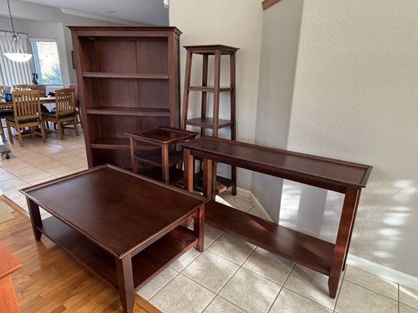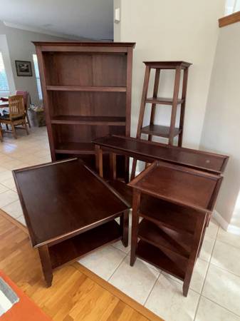 Beautiful 5 Piece Dark Wood accent group. Came from Crate and Barrel Store. See Pics. Coffee Table, Bookshelf,