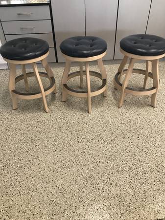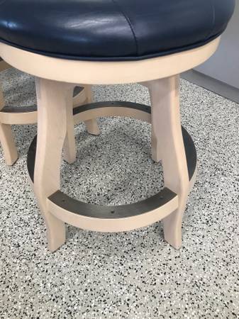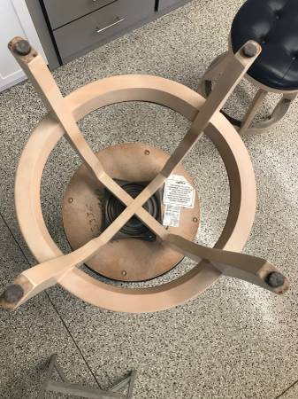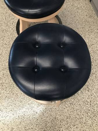 Stools, kitchen or table. Blue Leather top, ball bearing swivel tops.