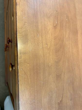 Queen bed, box spring, dresser, and nightstand. Headboard in perfect condition. Dresser and nightstand are solid wood, solid condition, drawers work perfectly, but many scratches and dings. Set...