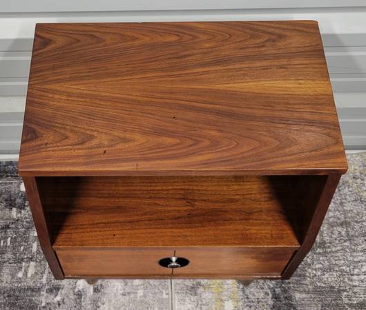 Fantastic refurbished Stanley MCM side /end / nightstand table with dovetail drawer. Very nice condition. The table is: 20"W x 14"D x 24"H. Can deliver locally to driveway with full price offer and delivery fee TBD, must look at the item and pay first, cash only. See my other ads. Have several Lane Acclaims posted.