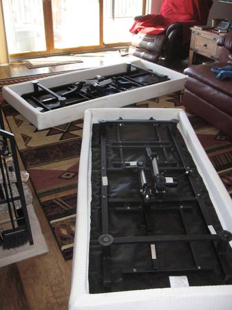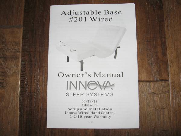 Two twin xl Adjustable Mattress Bases from Innova Sleep Systems. There are separate controls for each mattress base that lift the head and foot areas. The controls are 120 volt and come with all wiring and instructions. The frames with motors are very heavy and well built.