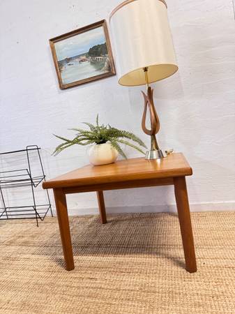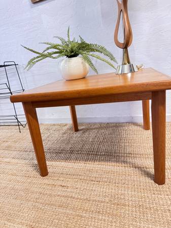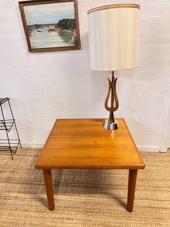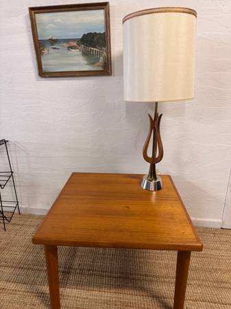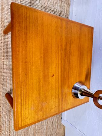 Well made side or end table from Brdr Furbo from the Eames era of design, with signature plate and clean lines with very well styled legs. Some marks on top, but does not detract. See pictures for sizes and best representation. $100 Cash takes it home!