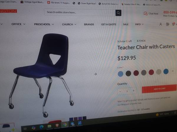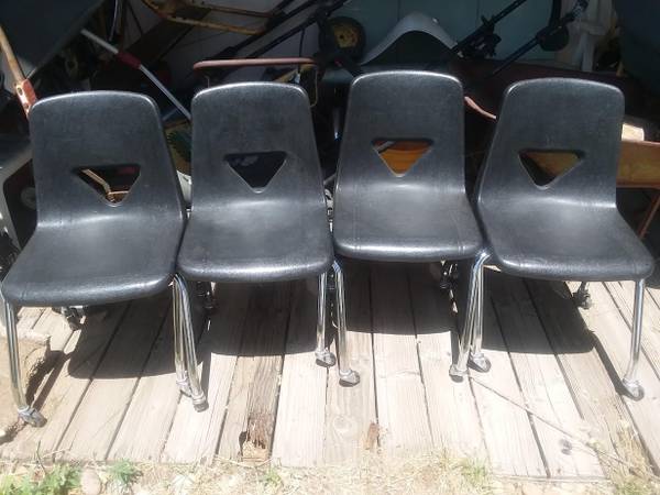 I have 4 stacking teachers chairs with casters Mid century style made of black plastic $50 each
